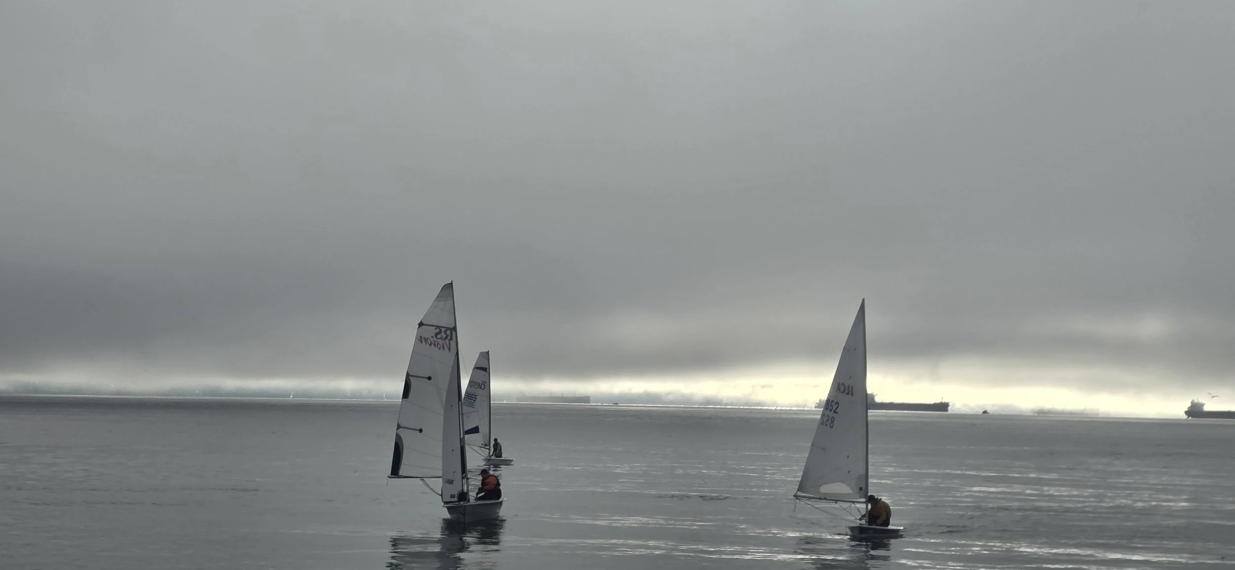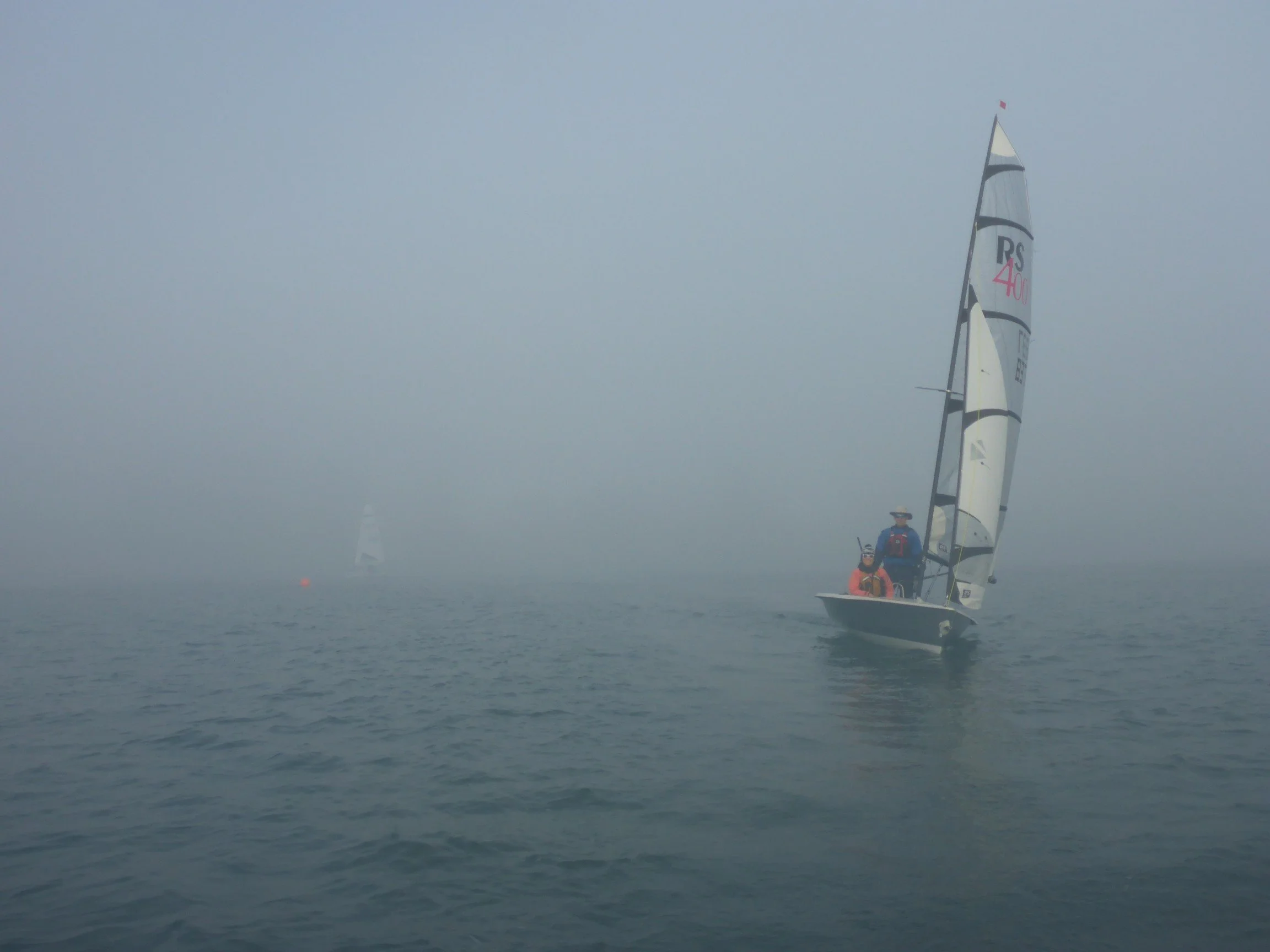 Thankfully the forecast was wrong and we did get some wind but that fog was something else….being unable to see the windward mark at the start was a new challenge. The light wind and no waves favoured our boat and we came away with the win this time. Huge thanks to my wife & crew Jungmi for absolutely perfect spin hoists and douses all day.