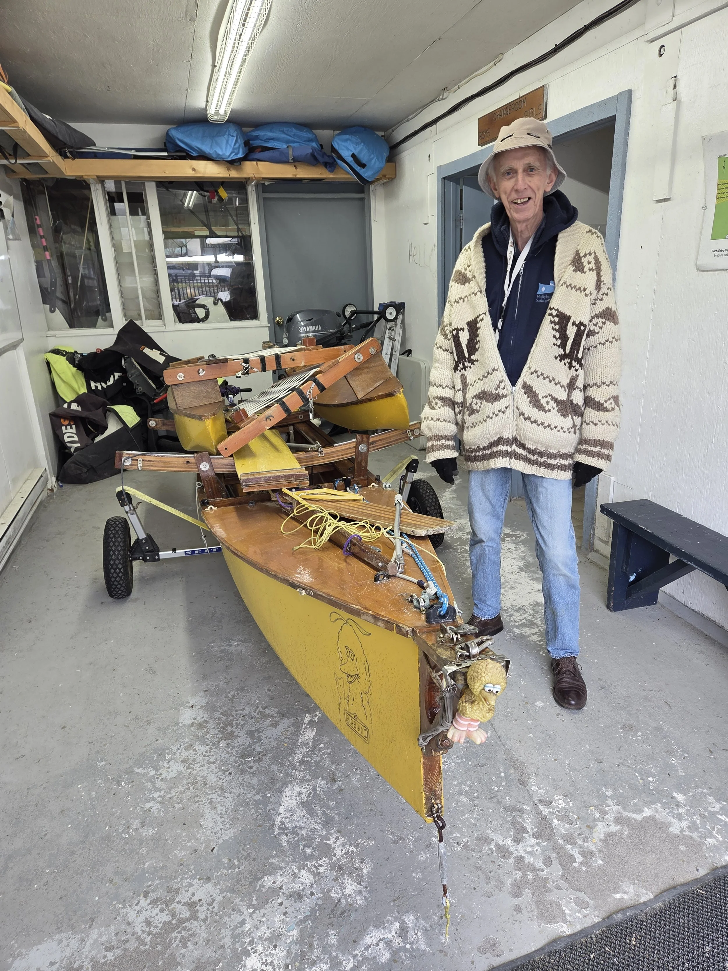 Big Bird, Trevor’s boat, in the workshop for a spring refresh!